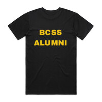 A bold nod to the classic BCSS uniform, this limited-edition black tee features block yellow “BCSS ALUMNI” lettering across the back — just like the uniforms we all wore (but now with a bit more freedom). On the front, the official 150th anniversary logo marks this as part of a special commemorative release.